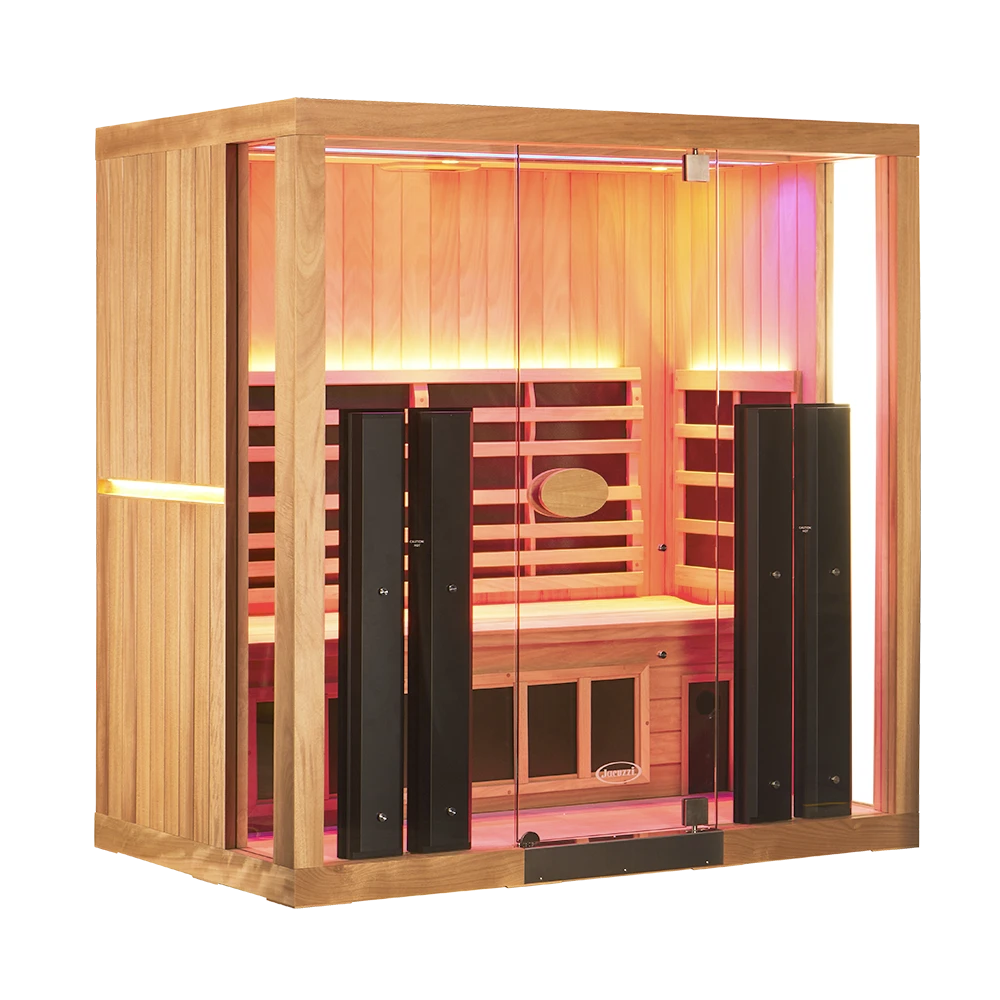 Experience the amplified benefits of your sauna session with our patent-pending front-facing heaters that emit a full spectrum of infrared wavelengths. These include near, mid, and far infrared, which work together to enhance the advantages you receive during your sauna experience.